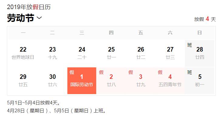 2019年的这个五一我们一共放假四天,国企的亲们可能要辛苦点按照国际规定来,私企的亲们就不同辆,可以申请顺带休年假或者5号的时候提前请假一天。这样我们就有足够的时间去到想去的地方玩耍了。