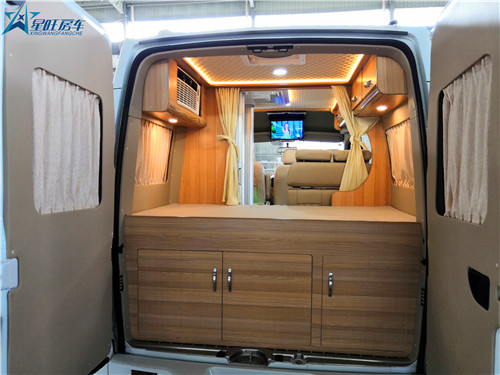 内部可根据需要进行定制选择,图片款是5座3卧款的,比较适合家用,还有5座2卧、5座4卧等款型,这个是要要权衡预算和自我体验来做选择的,感觉有些甚至可以选为商务用。车上具备所有日常生活、休闲娱乐设施,很适合居家旅行。国产房车哪家好?建议在预算允许的情况下,还是选择第一眼喜欢的那款型,RV80就推出了B型短轴版、长轴版,C型标准版,内部配置达到6款,可挑选的余地还是很大的。