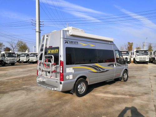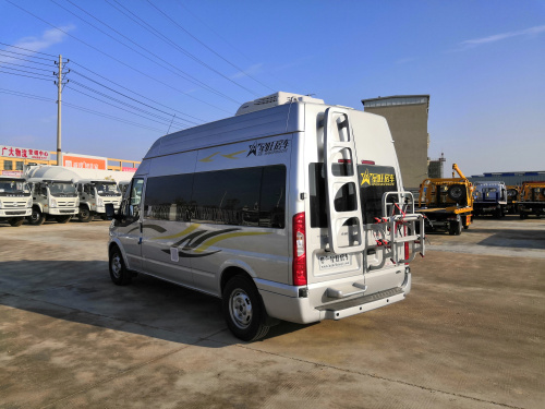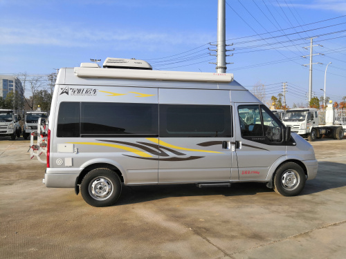 这款福特新世代长轴高顶房车,外观采用闪耀银色,福特2.2T国六柴油发动机,6速手动挡变速器,3750mm轴距,5座布局,6米以内的外观尺寸,依然是满足上蓝牌,C照驾驶需求。