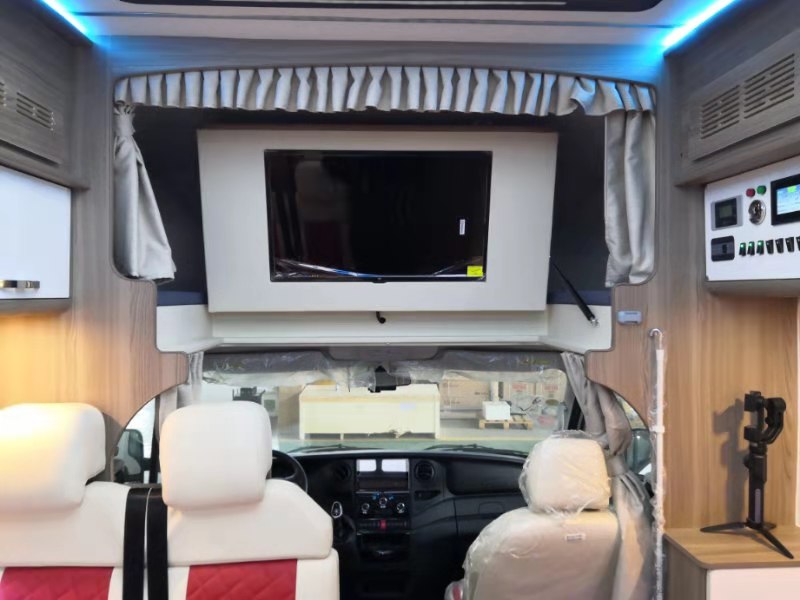 此车配有:300A锂电,3000W逆变充电一体机,电动踏板,电磁炉,美的微波炉,美的家用变频空调,进口多美达抽拉带转转式马桶,3kg洗衣机,190L冰箱,10L燃气热水器,户外抽拉灶,5000W独立柴油暖风,500w太阳能板。240L清水箱,85L污水箱。