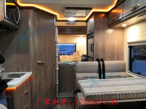 底盘动力方面,该房车仍然是基于依维柯欧胜底盘改装而成,搭载3.0T柴油发动机,额定功率为107kw,最大扭矩370N.m ,最高车速可达130km/h,匹配8速自动变速箱,百公里油耗大约13L,油箱容积为95L,可满足大多数续航的需求。 优势在于市区限高 这款车高只有2800mm 市区大部分限高即可通行!!!