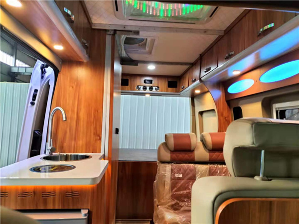 整车配有:300A锂电,3000W逆变充电一体机,800W电磁炉,50L冰箱,12V底置空调,户外抽拉燃气灶,星空顶LED灯。